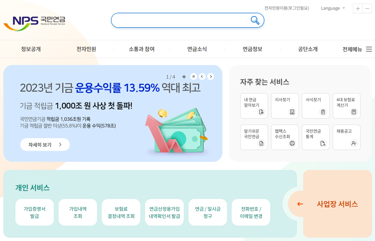 ① 국민연금 홈페이지에 접속합니다. (https://www.nps.or.kr/jsppage/main.jsp)